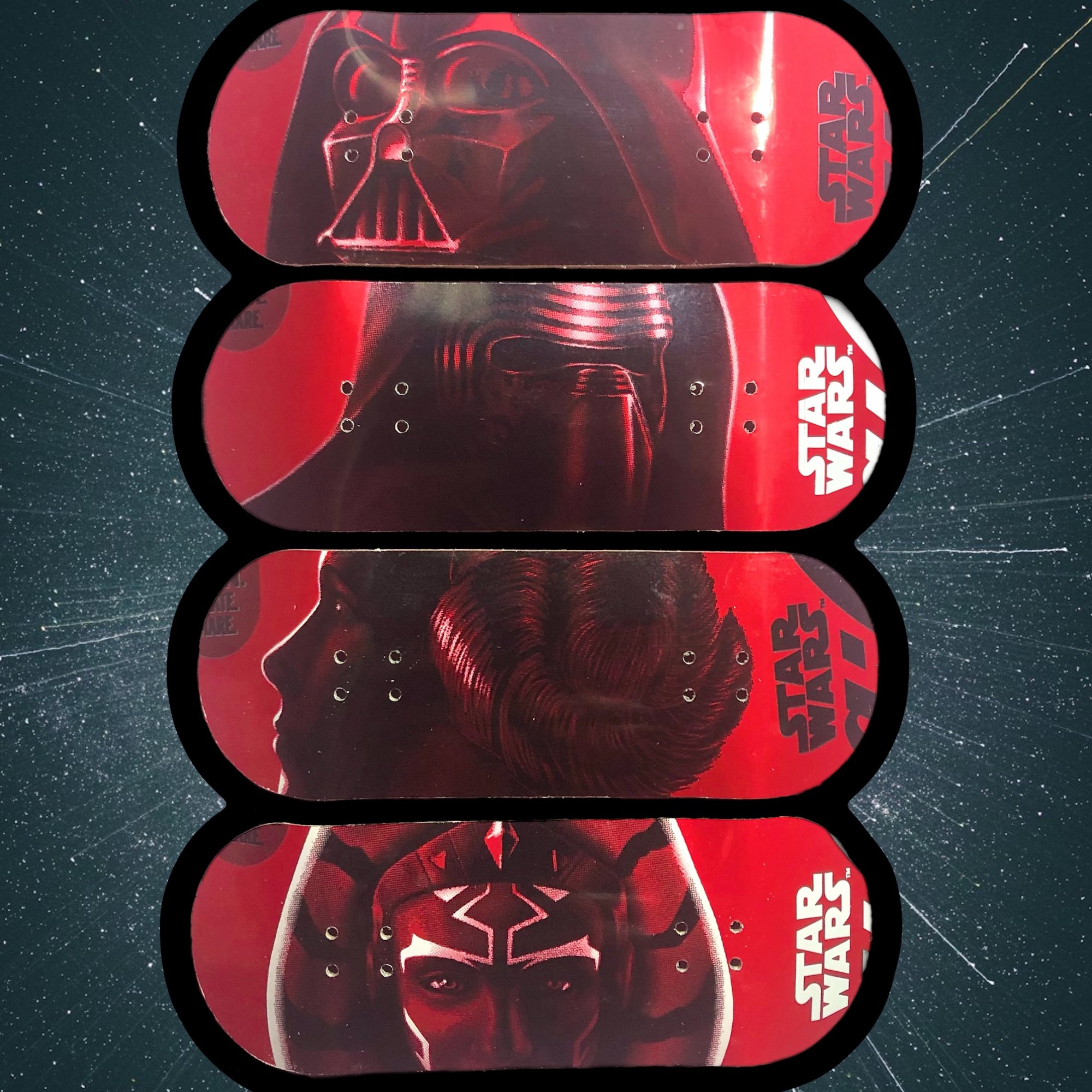 These are made from Recycled Coke Cans. The decks are 5 ply wood with an extra bottom layer being the metal can for some extra snappy pop! Graphic of the can will wear away with use like a real wear down to the bare metal